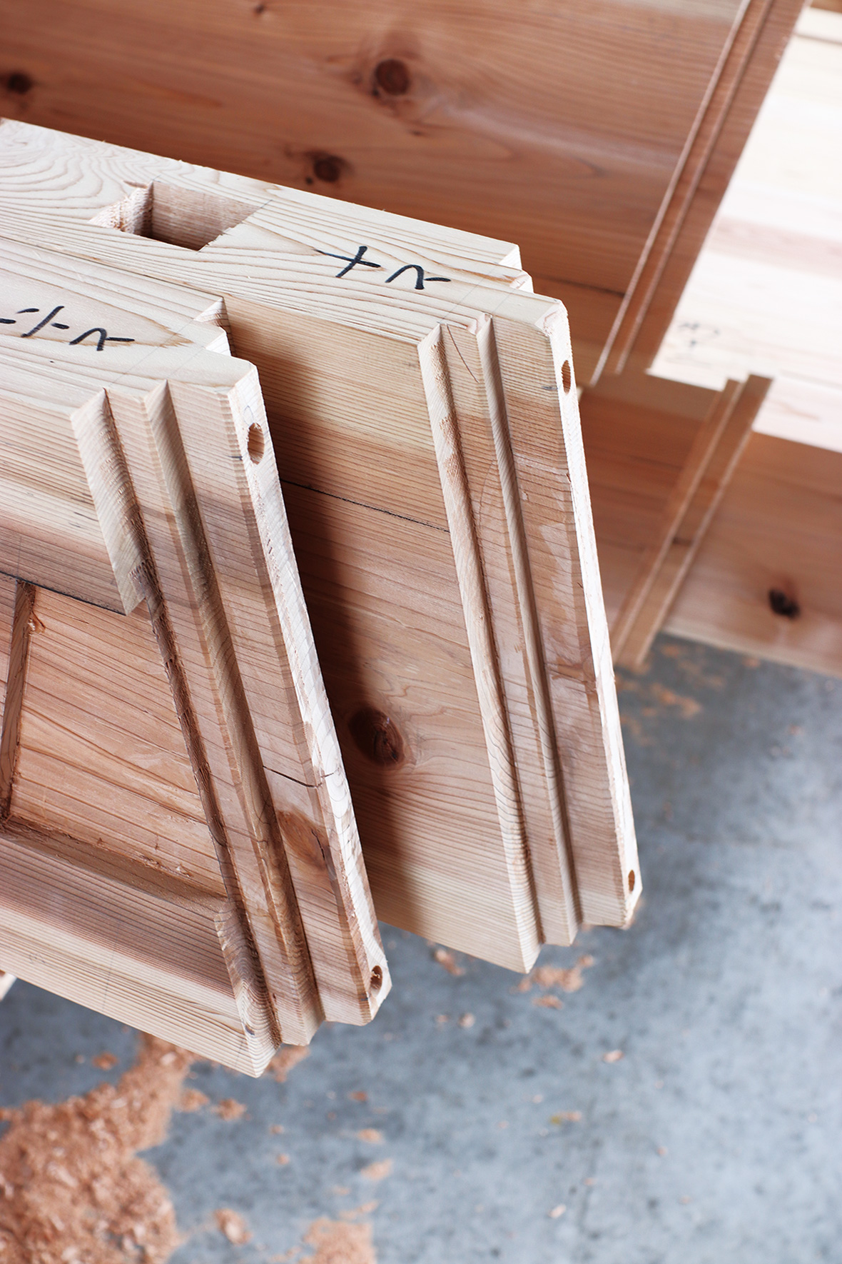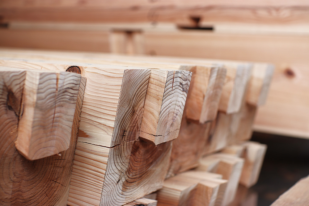 家を建てるための木材を、工場であらかじめピッタリサイズに加工しておくことで、現場での組み立てが簡単になり、工事も早く、仕上がりもきれいになります。